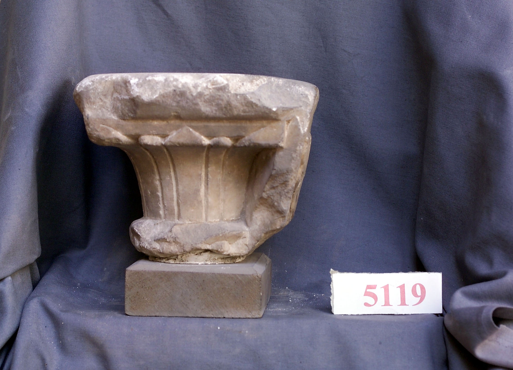 capitello a foglie stilizzate; su una faccia uno scudo con una testa di cane