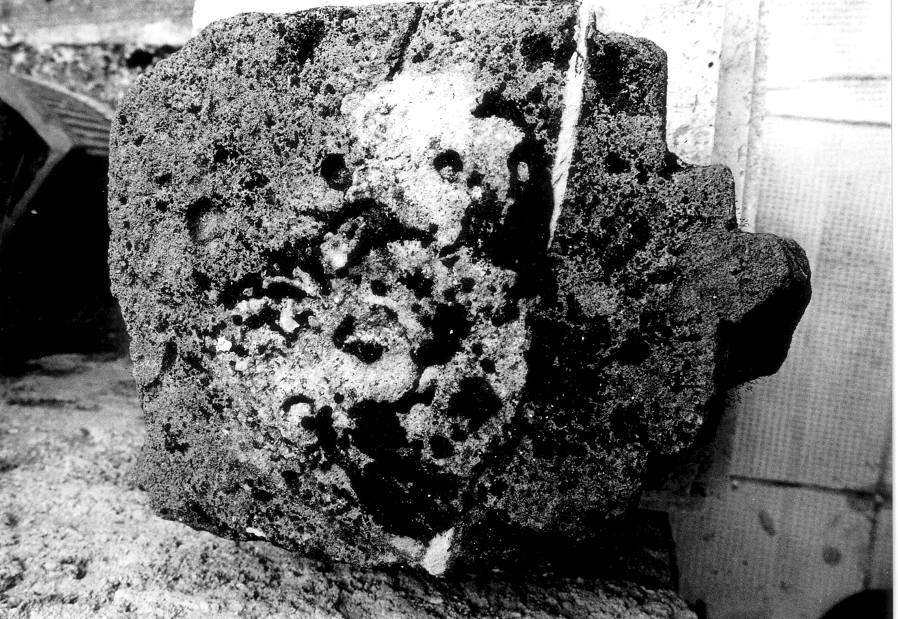 - NOTIZIE STORICO CRITICHE Elementi che compongono un monumento a ricordo dei Carabinieri caduti nell‘esercizio del dovere ed elaborato nel corso dei restauri eseguiti dalla Soprintendenza dei Beni Architettonici negli anni 80‘. Il monumento è composto da vari elementi: (dal basso)- base di colonna (malta). - plinto(travertino)derivante dal monumento ai carabinieri caduti nell‘esercizio del dovere che stava all‘interno della chiesa (parete nord)e del quale riporta la data inserita a mosaico- MCMXLVIII -1948.- base di colonna in pietra.- elemento erratico modanato (pietra porosa nera)