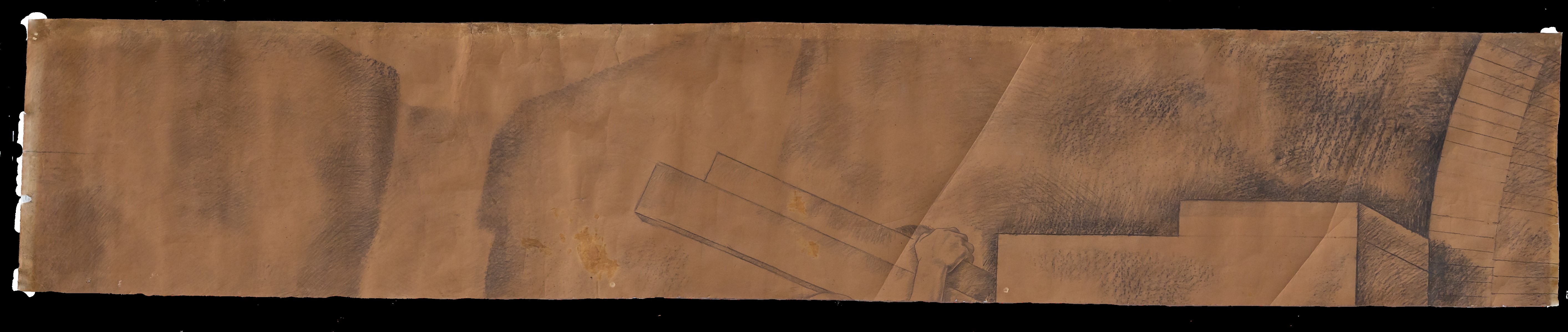 cartoni realizzati in proporzione 1:1, per l'affresco eseguito, tra il 1935 e il 1938, dall'artista reatino nella volta dell'allora Aula Magna della R. Università di Palermo sita al Complesso dei Teatini. I disegni preparatori sono in totale 15 divisi in 4 scene. Ogni scena ha 3 parti. La scena 3 è composta da 6 parti