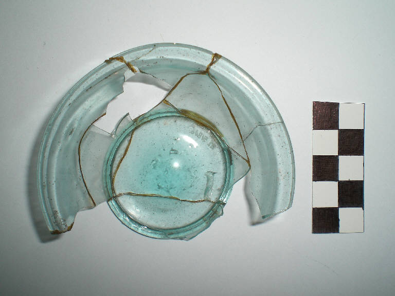Frammento di coppetta di vetro a labbro orizzontale e pareti convesse