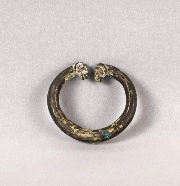 Armilla a sezione circolare: si restringe all'estermità dove termina con protomi d'arieti.