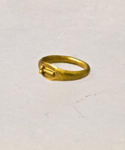 Anello con verga piena a nastro; sul castone ovale e liscio è raffigurato a rilievo un fallo stilizzato