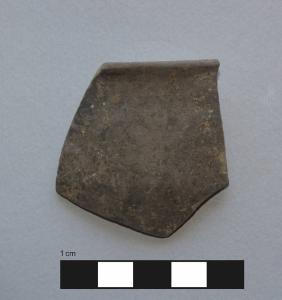 Orlo+parete di skyphos. \nOrlo assottigliato, arrotondato, breve labbro estroflesso a profilo curvilineo, vasca troncoconica rastremata verso il fondo.\nCorpo ceramico compatto, con superficie liscia e compatta, con depurazione buona, assenza di inclusi. Colore nucleo: grigio; sup. esterna: grigio; sup. interna: grigio.