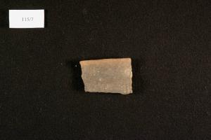 orlo assottigliato arrotondato, labbro estroflesso a profilo curvilineo, carena netta, attacco della vasca; leggere solcature verticali sotto la carena.