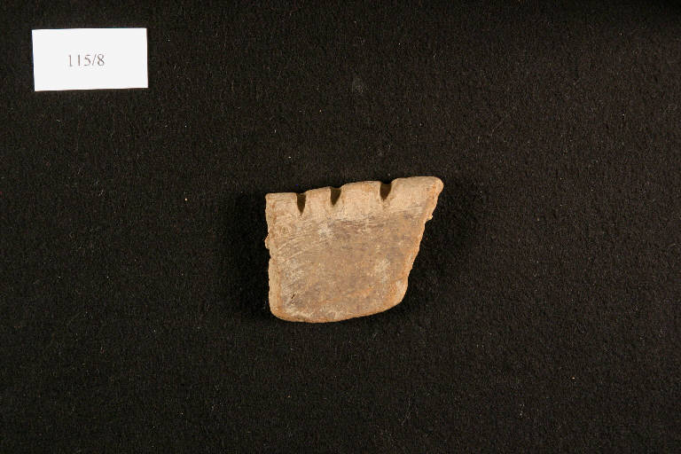 orlo piatto, labbro indistinto, vasca troncoconica; tacche strumentali sull'orlo.