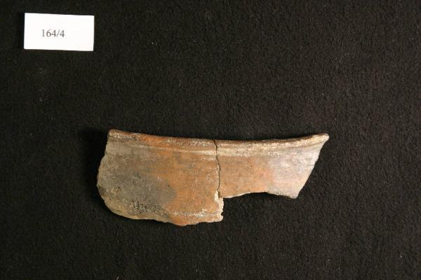 orlo ingrossato e distinto verso l'estreno piatto, labbro verticale a profilo rettilineo, carena netta.