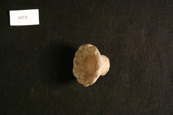 orlo arrotondato, labbro indistinto, vasca troncoconica mediamente profonda,fondo concavo; tacche digitali sull'orlo.