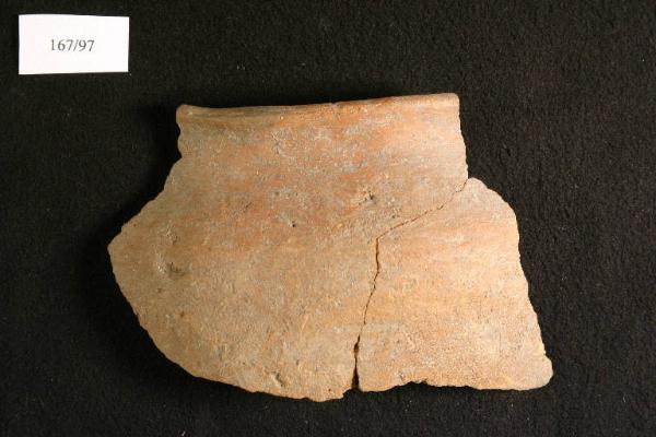 orlo obliquo verso l'esterno, labbro leggermente estroflesso a profilo curvilineo, spalla arrotondata, corpo ovoide.