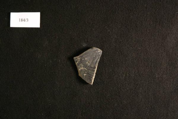 probabile porzione di collo con attacco della spalla; composizione geometrica di solcature oblique molto leggere.