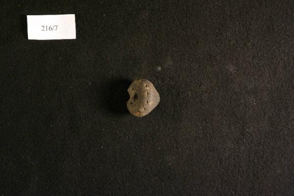 fusaiola troncoconica con fondo concavo; fila di punti incisi sul fondo intorno al foro centrale e sulla massima espansione.