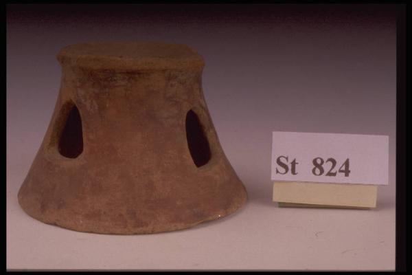 Piede di coppa di forma troncoconica, decorato da tre aperture sub-triangolari. Superficie arancione