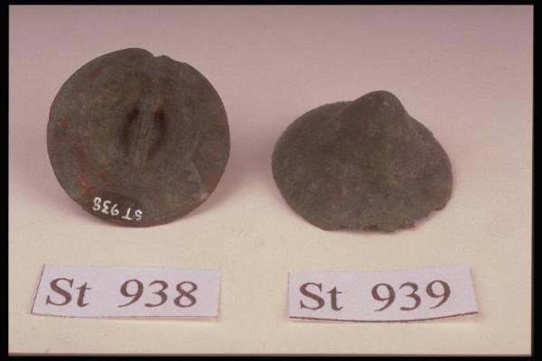 Elemento di bronzo simile a piccolo umbone, decorato da cerchi concentrici incisi