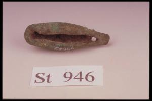 Conchiglia di bronzo con appendice triangolare provvista di piccolo foro