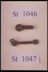 Elemento a forma di 8 allungata, pertinente a una collana.