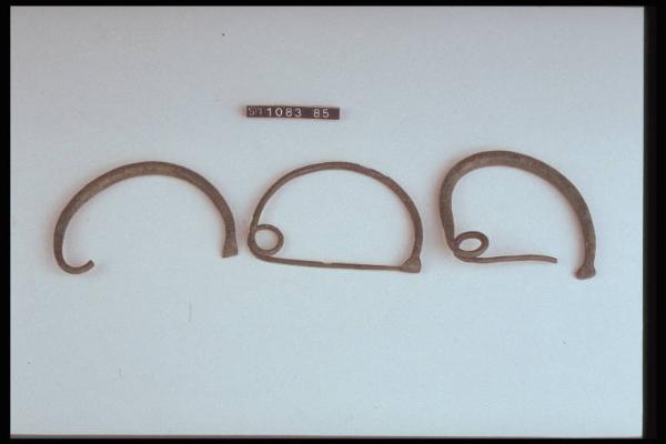 Fibula ad arco semplice con decorazione incisa a spirale.