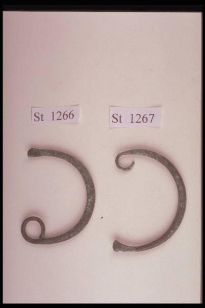Fibula ad arco semplice con decorazione incisa a spirale.