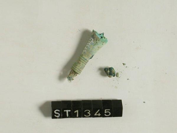 Frammento di fibula ad arco rivestito di osso, decorata a trattini paralleli incisi sopra la molla