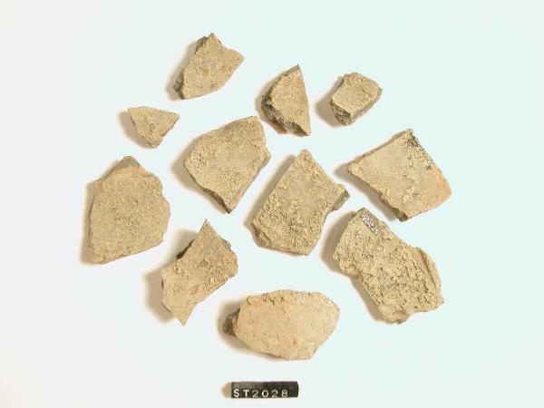 Recipiente ceramico di forma non riconoscibile. Frattura nera con margini arancio.