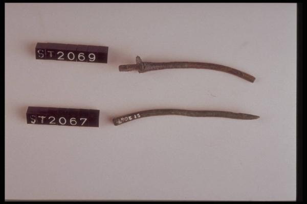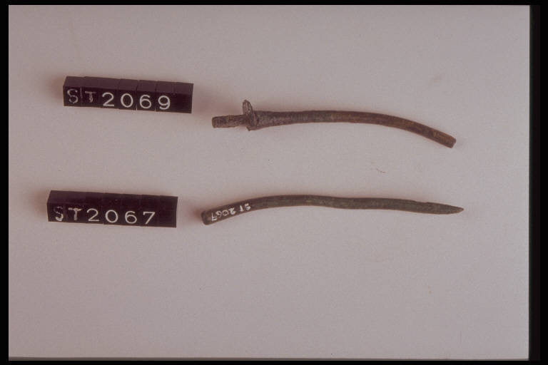 Spillone desinente a disco con appendice a sezione quadrangolare.