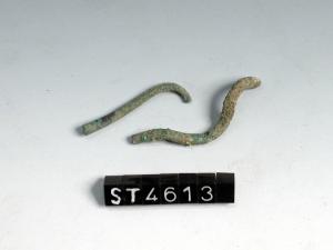 Frammenti di verghetta a sezione circolare, deformata dall'azione termica del rogo.