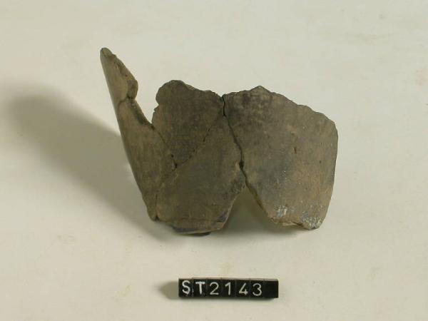 Frammento di fondo e parte della parete ceramica a corpo troncoconico. Colore nocciola grigiastro.