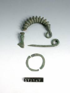 Fibula a grandi coste, con anello di nastro infilato sull'ago.