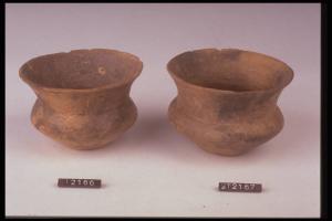 Bicchiere carenato con fondo ombelicato. Colore giallo grigiastro.