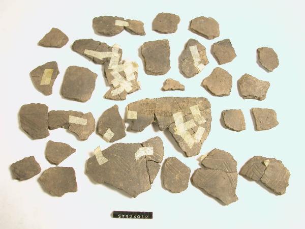 Urna situliforme decorata da motivi a zig-zag sopra il piede e sopra la spalla, orlo decorato a tacche (vedi annotazioni).