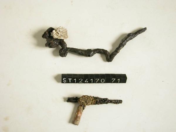 fibula ad arco serpeggiante, con frammento di osso.