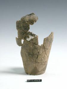 Vaso situliforme decorato a stampiglia da cerchietti concentrici e a doppia S.
