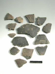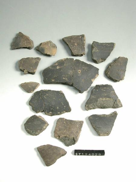 Frammenti di parete probabilmente pertinenti a uno stesso recipiente di forma non riconoscibile; colore nerastro.