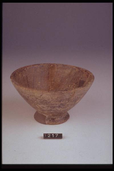 Coppa a corpo troncoconico. Decorazione interna a raggiera a stralucido nero su fondo a risparmio.
