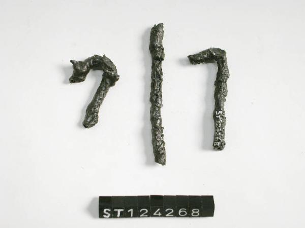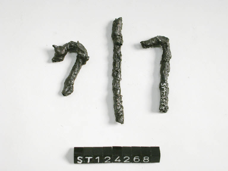 Frammenti di verghetta, due dei quali con estremità ripiegati a uncino, forse pertinenti a gancio.