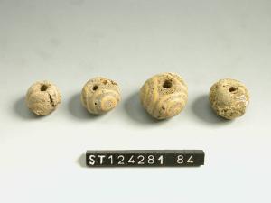 Perlina globulare di pasta vitrea nera con cerchi concentrici gialli (vedi annotazioni).