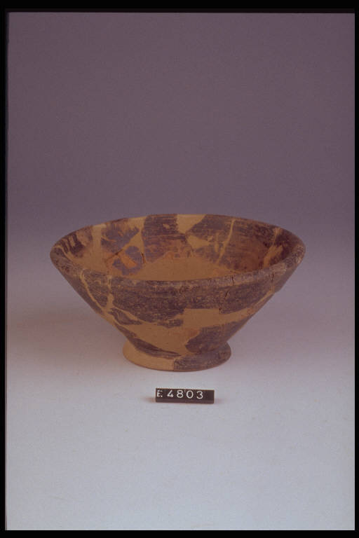 Ciotola a corpo troncoconico, orlo rientrante, superficie nera.