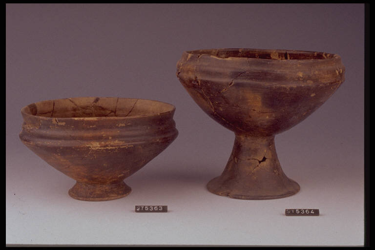 Coppa a corpo troncoconico, orlo cordonato, alto piede svasato a tromba.