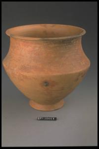 Urna carenata su basso piede obliquo decorata nella parte superiore da motivi a stralucido rosso.