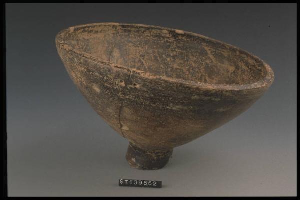 Coppa a corpo troncoconico su stelo (?) tubolare. Tracce di riparazione antica.