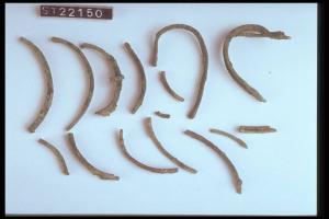 Frammenti di orecchini (?) di doppio filo di bronzo avvolto a spirale.