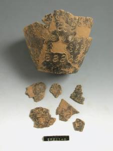 Vaso situliforme decorato da motivi a cerchielli concentrici ed S impressi.