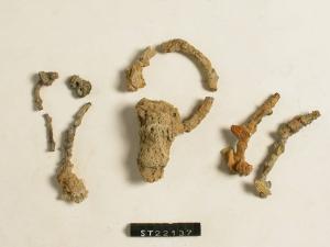 Quindici frammenti in parte ricomponibili, pertinenti a due fibule ad arco serpeggiante e a un corredo da toilette