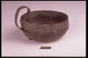 Labbro verticale, vasca emisferica, fondo piano; ansa a nastro sormontante con attacco inferiore a T