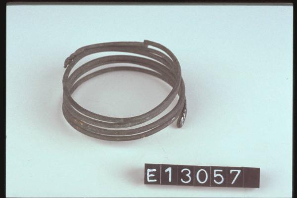 Orecchino in doppio filo di bronzo avvolto a spirale con un'estremità ritorta