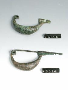 Fibula a navicella con lunga staffa desinente a globetto