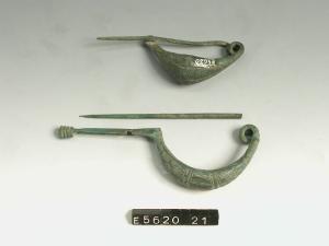 Fibula a navicella con lunga staffa desinente con un'appendice a bottone