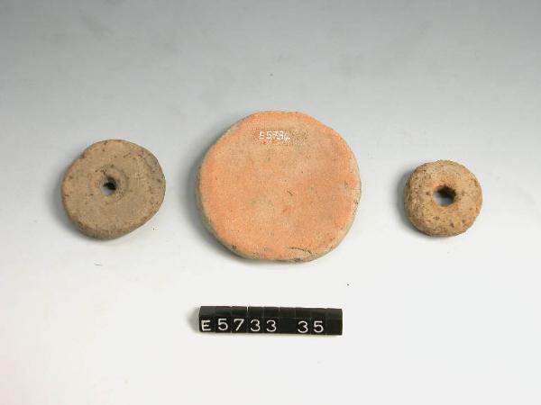 Disco in terracotta con foro circolare centrale