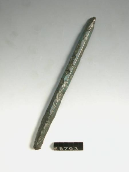 Frammento di verghetta in bronzo a sezione poligonale con estremità appiattita