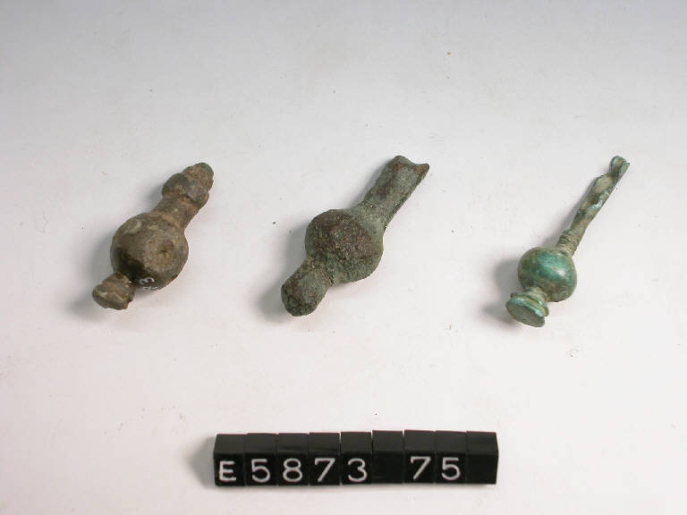 Frammento terminale di staffa desinente a globetto ed appendice troncoconica profilata