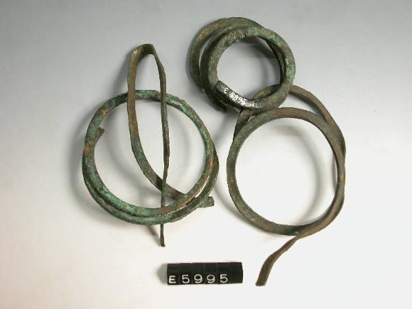 Cinque frammenti di nastro di bronzo avvolti a spirale