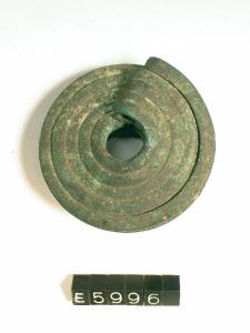 Pendaglio formato da cinque anellini in doppio nastro di bronzo concentrici